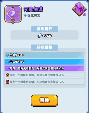 必带:连击增伤(提升连击状态下的基础伤害,与特效伤害叠加)+ 元素剑谱(每多1把附魔元素剑,对应元素伤害额外增加,直接强化特效伤害);