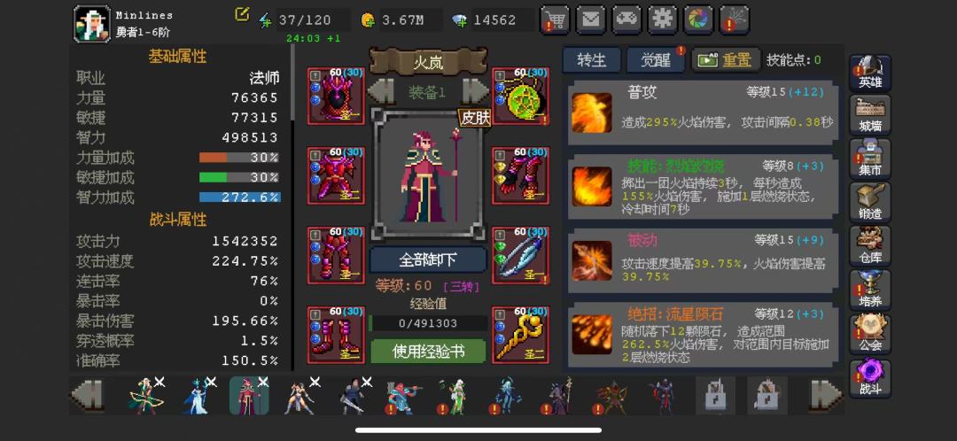 注:作者本人从事相关行业,火岚0氪,目前无尽1250,由于论坛帖子质量层次不齐,便想通过游戏内伤害公式建模并进行数据计算得出部分搭配的最优解,以下核心数据(基础攻击速度、攻击间隔、基础暴击率、基础连击率、基础暴击伤害)均取自作者当前进度, 宝石均为5级,蓝宝石+8.5%连击率,红宝石+10%暴击率,头盔+鞋子赐福四孔情况。,文章最后会给予部分说明。