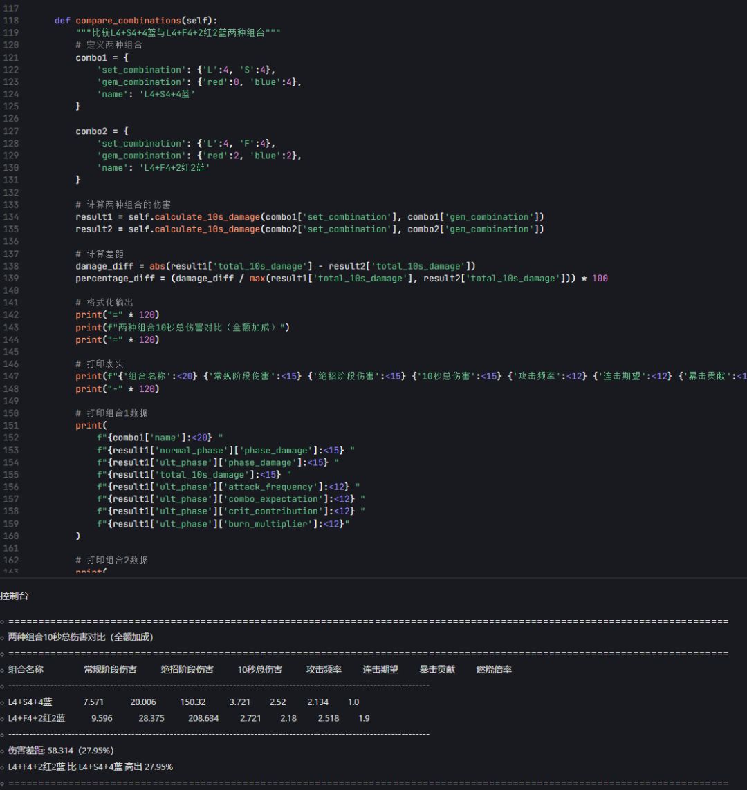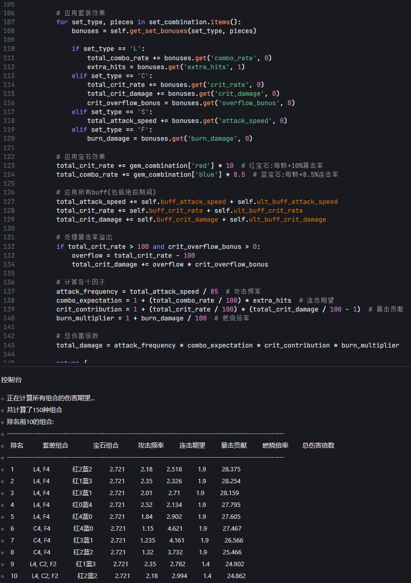 设计枚举组合程序,计算去重组合下享受全额BUFF加成(常驻+绝招)的伤害期望。