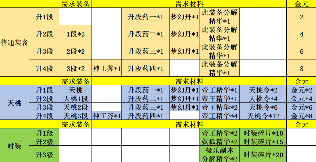 升段时候速度、经验百分比不增加,其他属性按照120%、150%、200%、250%变化。