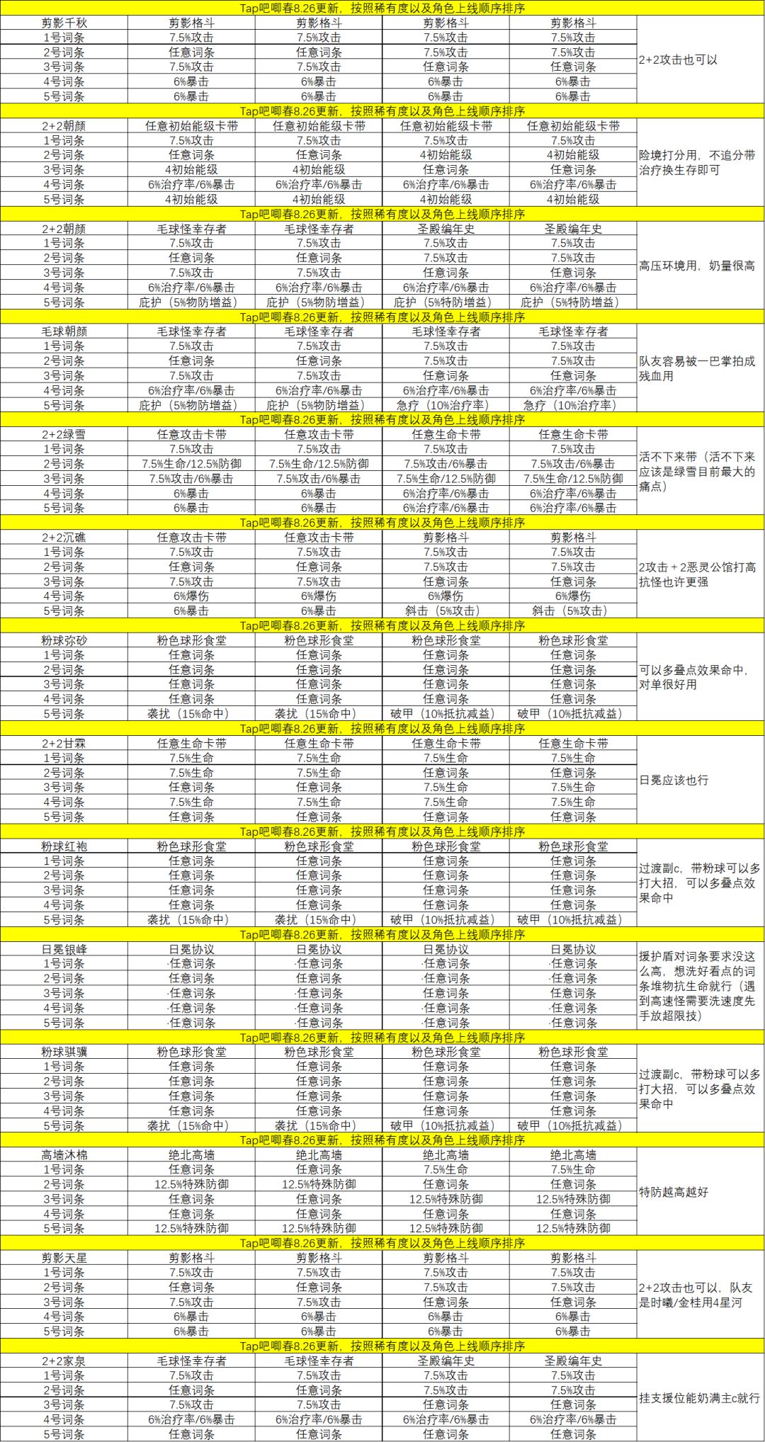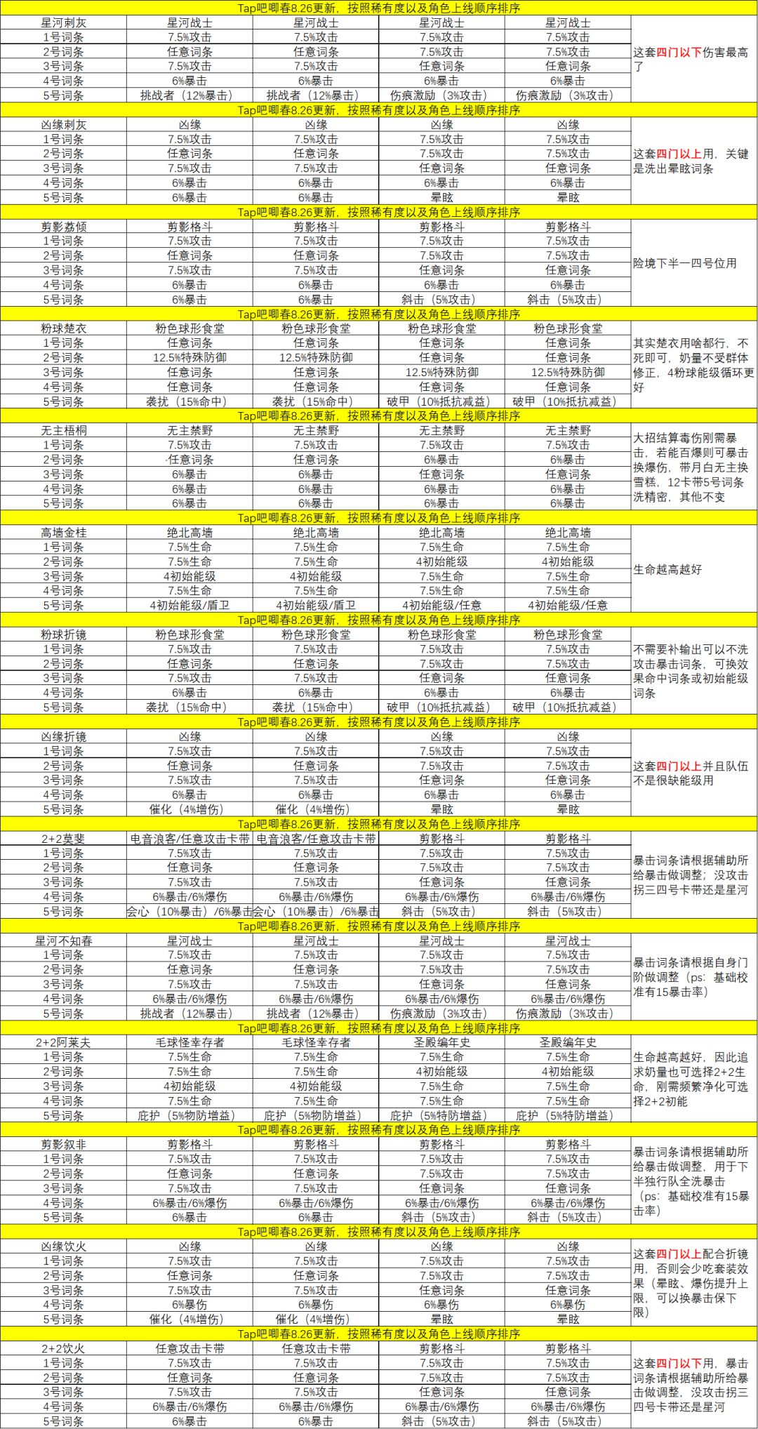 具体使用的卡带、需要的词条会因为环境、配队有变动,这里只指出常见配队、一般场景下的卡带及其词条。
