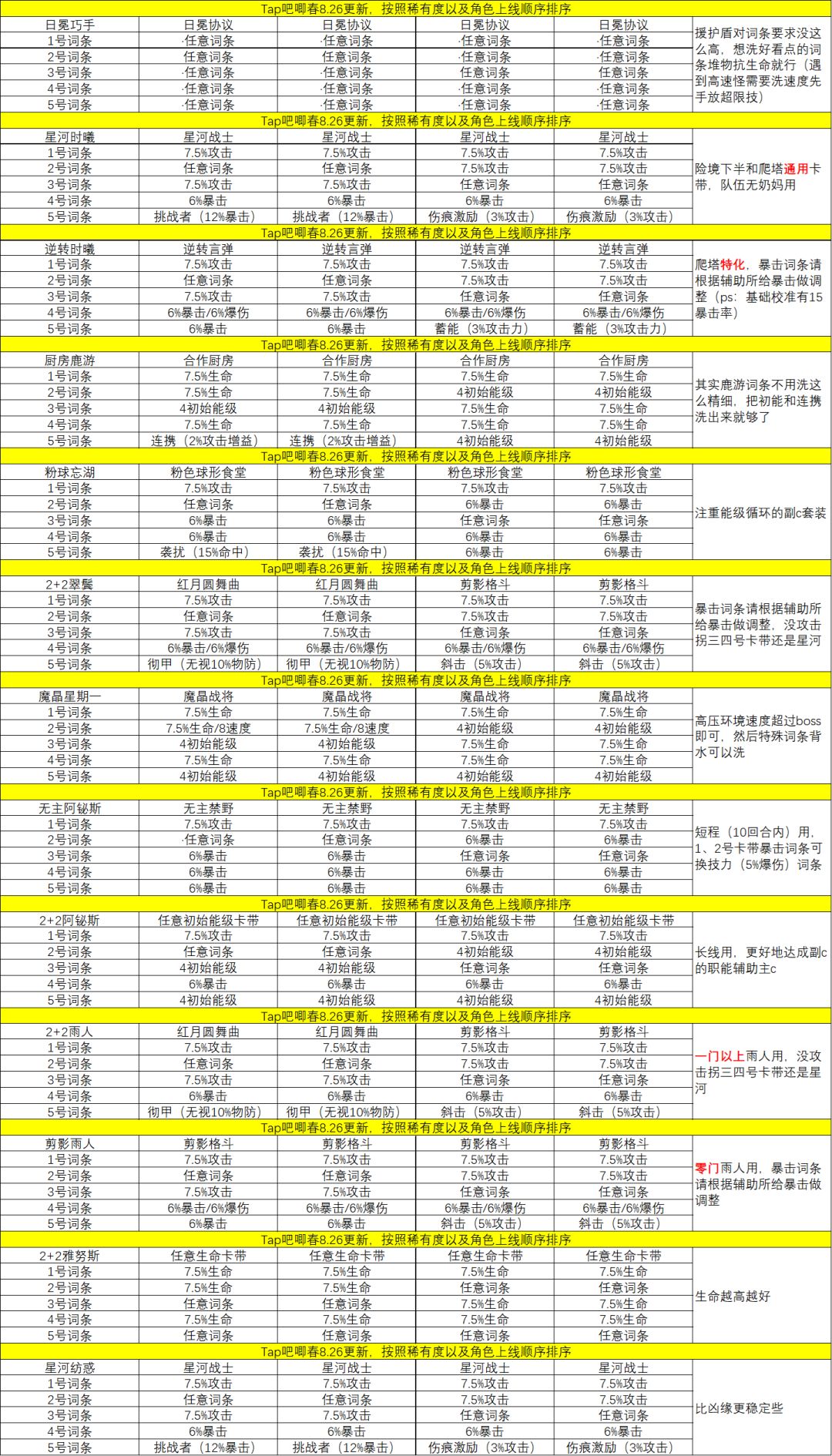 原先2+2攻击3、4号卡带洗了星河的组长萌险境不打分就不用改了(因为大部分上半配队都会带朝颜或当期险境环境给了某张卡充当攻击拐的功能,所以一般就是带剪影不变了)