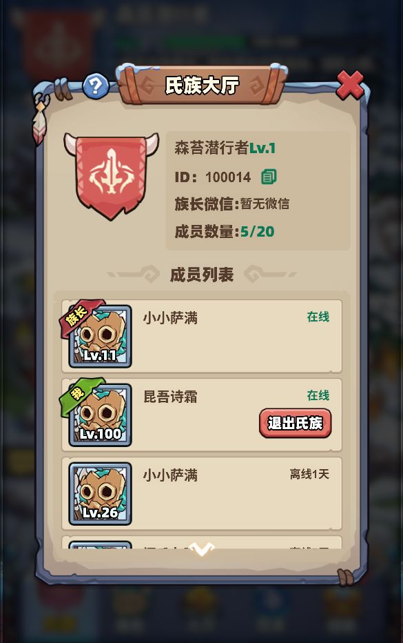 - 这里铭刻着氏族的图腾与荣耀!萨满勇者可以在大厅中浏览氏族的ID、等级、成员数量、以及每位成员的活跃轨迹。