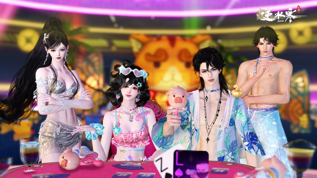 逆水寒新版本更新后,心计牌全新模式【大乱斗】即将焕然登场!各位同门快穿上美丽泳装,在泳池派对中来一场水枪对局吧!