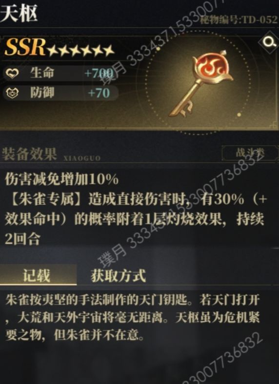 天枢:全方面提升朱雀的作战能力,其中元素附着能力以及伤害加成/减免效果最为突出