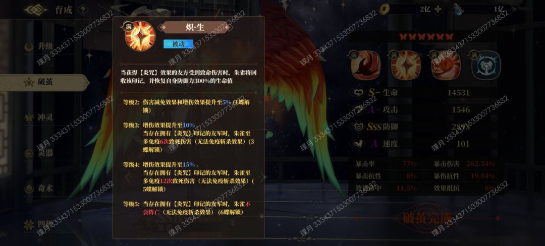 幽精:帮助朱雀更快的进入残局状态,并且获得首回合无敌效果