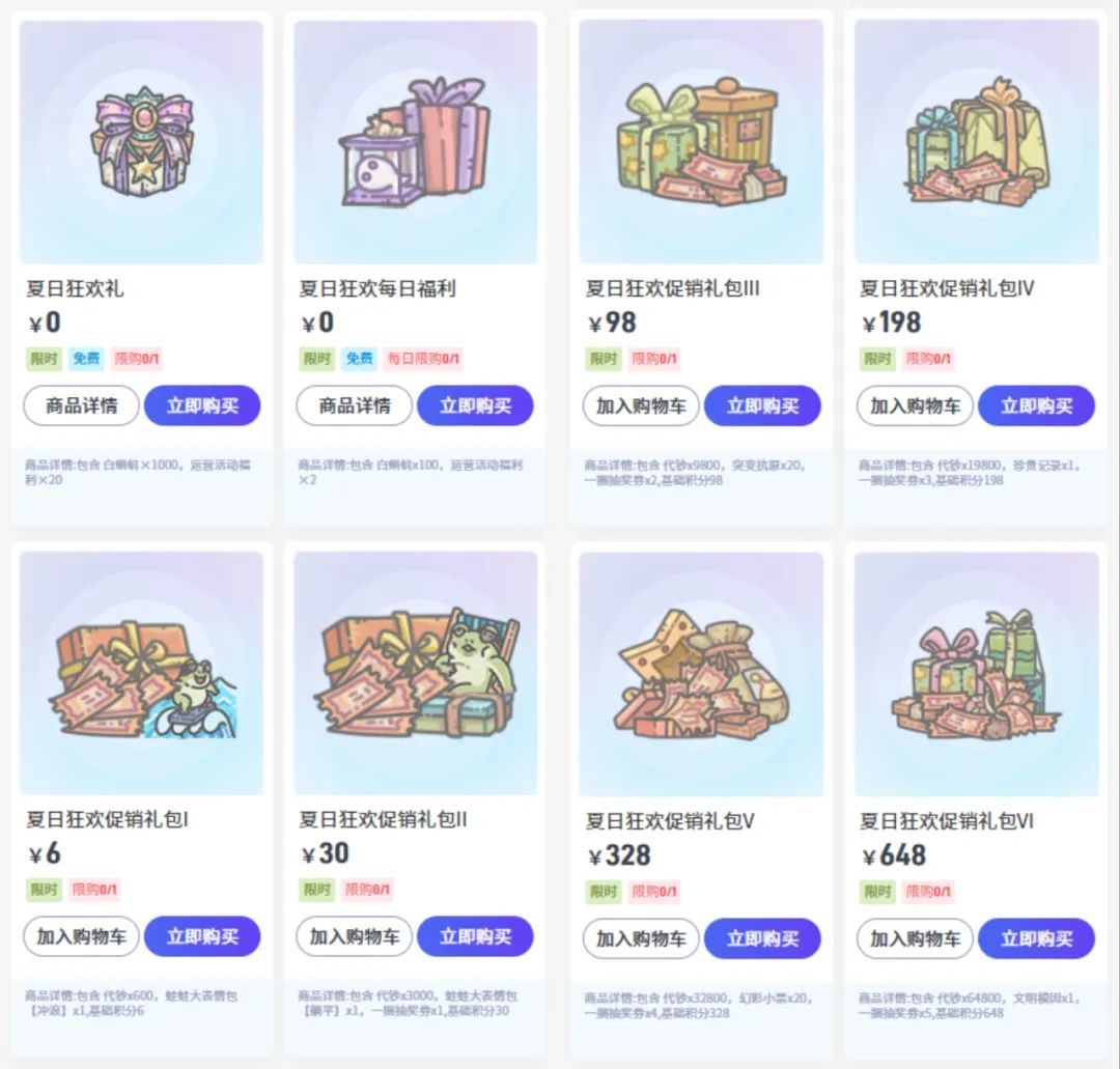 活动期间,全新夏日狂欢促销礼包上架!