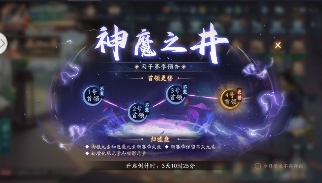 根据归墟盘变动,御极元素(全体防御+转移伤害)和连袭元素(基础+追击普攻)新赛季将失效,仅保留不灭元素(血量+减伤)