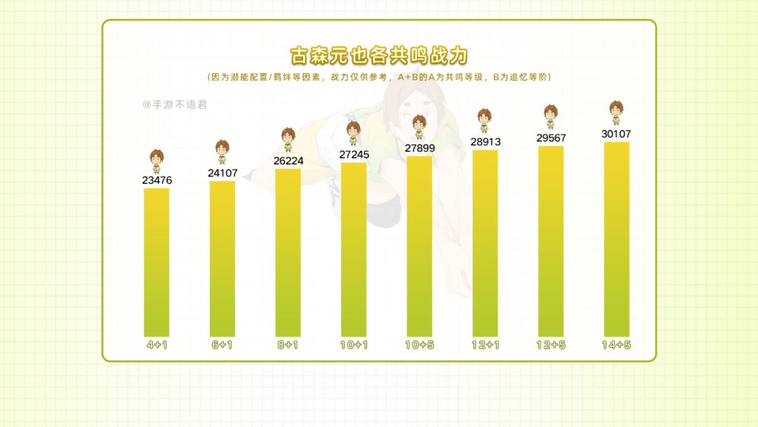 【解析】很关键且高性价比的共鸣,触发条件是BUFF不小于5层,每回合就能加6层,所以几乎全程满足。大部分时间能加满,40%我方小技能接球威力一级50%古森传球技能威力。扣球得分时还能刷新传球技能CD。