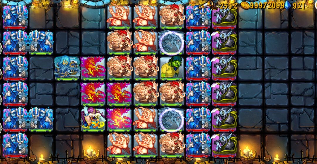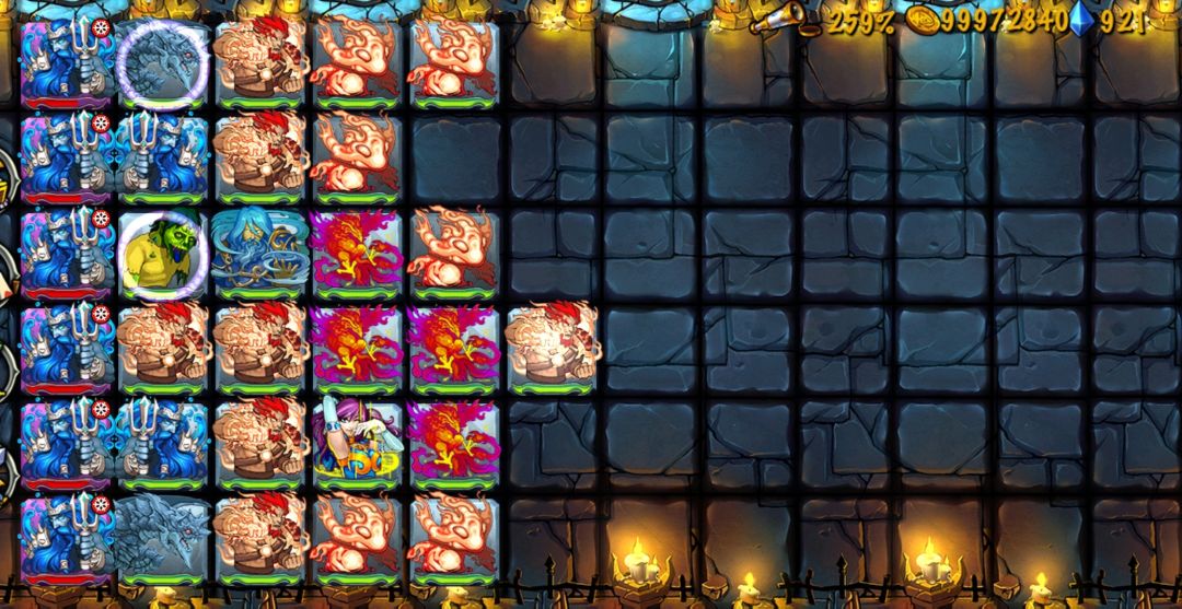4、到BOSS的前一步就要变好BOSS阵型,因为凤凰和团长没有自由行动,见到BOSS再变阵就来不及了,第四波兵清完就要变好阵型再前行,左侧海神与冰龙的位置可以根据实际刷怪调整,一波秒完左侧整体右移第二回合秒右侧,第二回合没秒完看残阵情况有机会第三回合收尾通关。
