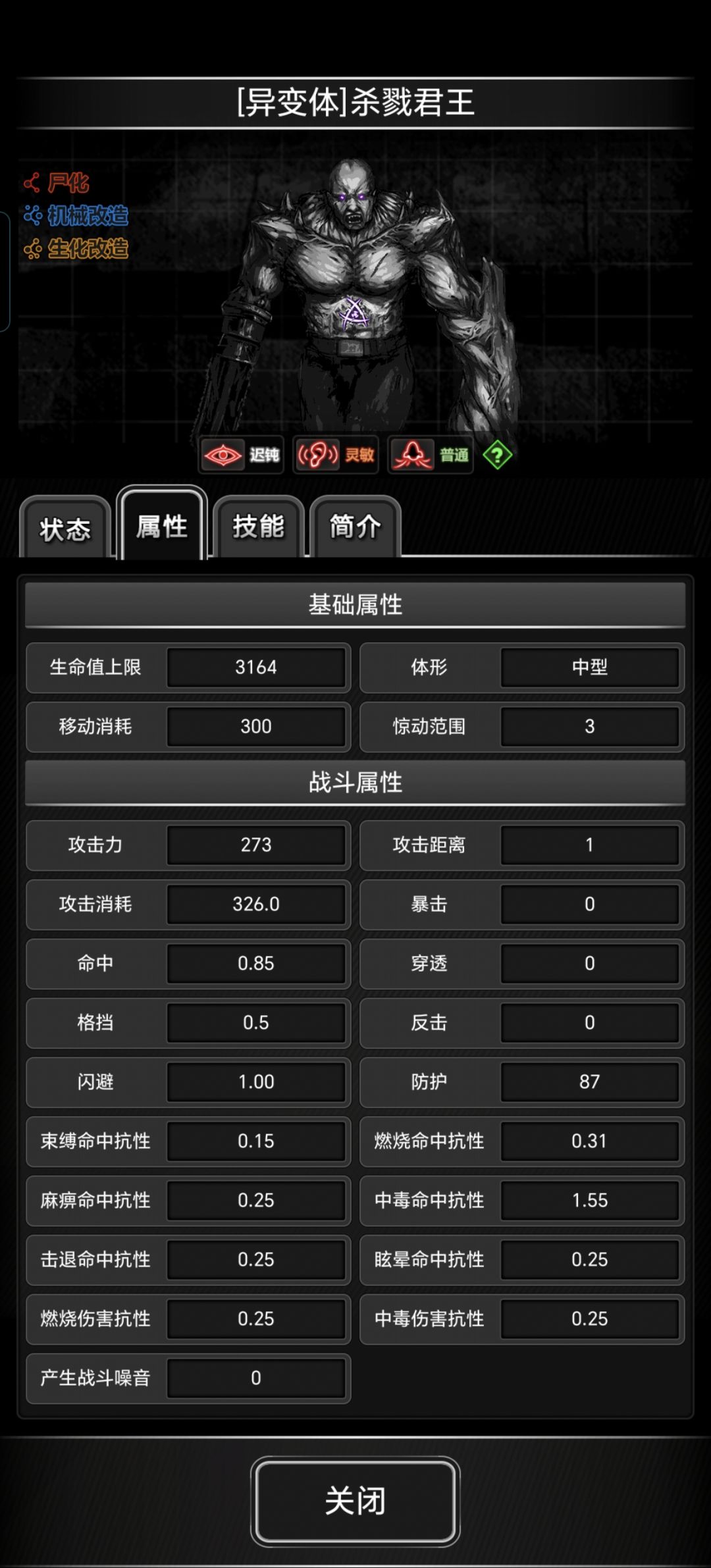 2.变异杀戮君王(能源屏蔽免疫1250以下的伤害,3164的血量×4.5的熟练度获取接近1.5w。高效的时间)适合无流血类附加伤害的获取(武器伤害没超过1250都适用)