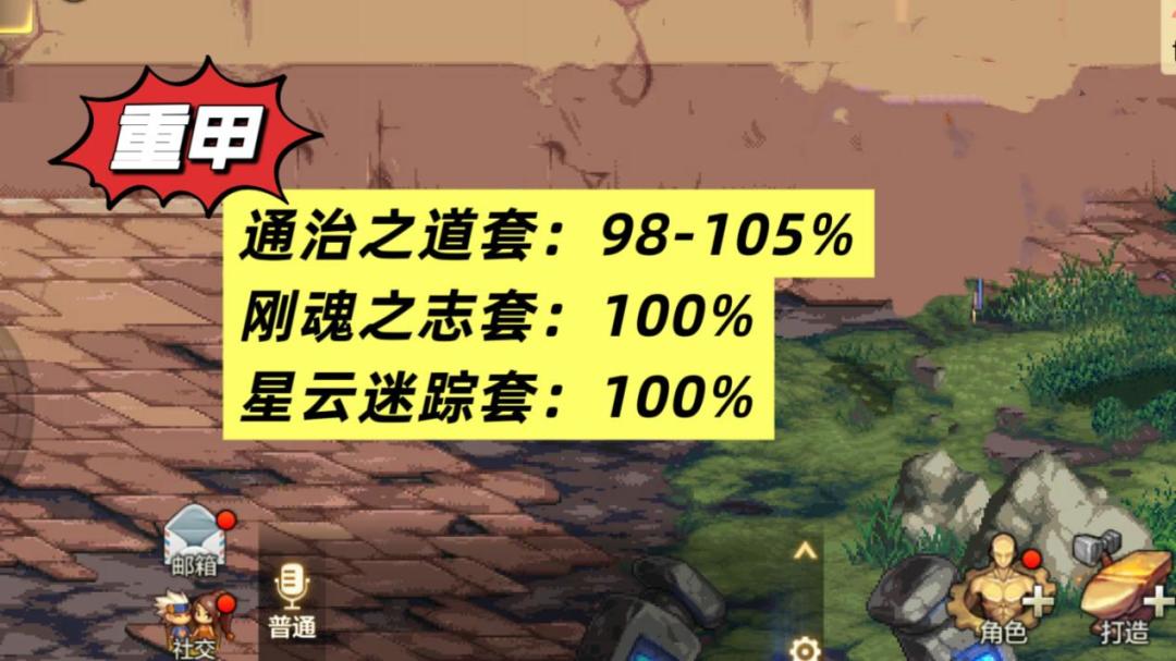 通治之道套98-105%、刚魂之志套100%、星云迷踪套100%,适合“剑魔、红眼、大枪、团长、判罪者”使用。