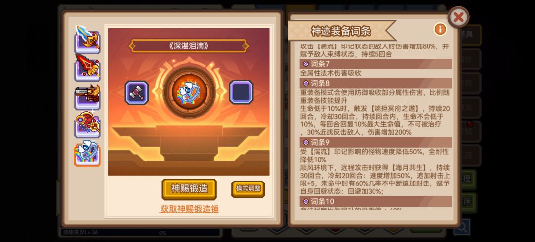 词条8乍一眼看是废物词条,什么垃圾玩意儿要压血10%,其实还是挺好触发的,如果有一定练度只需要穿脱装备即可触发,配合第七回溯可以延长到四十回合,攻坚方面基本够用