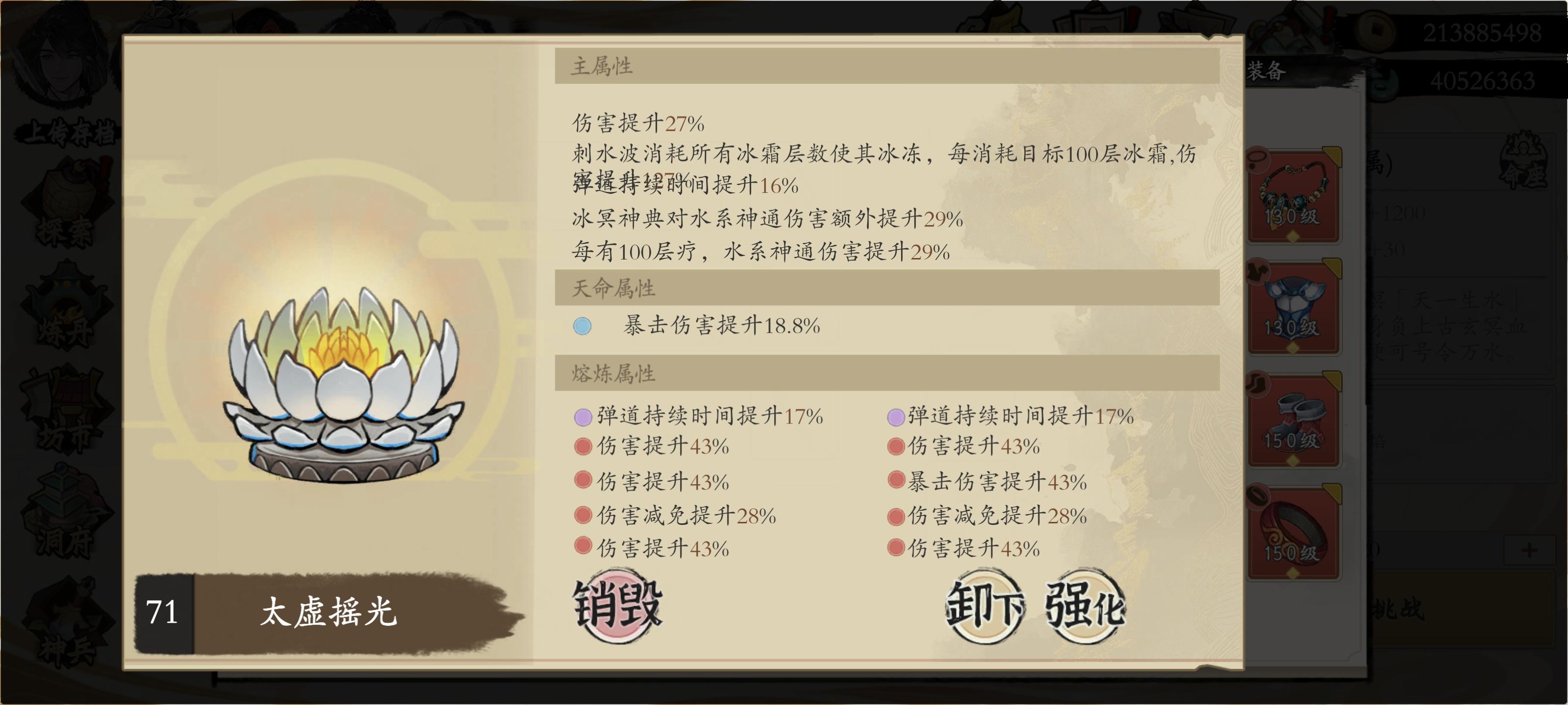 标准木青龙+书卷,npc无参天(25%木伤),本命攻击加成127%,本命爆伤加成109%