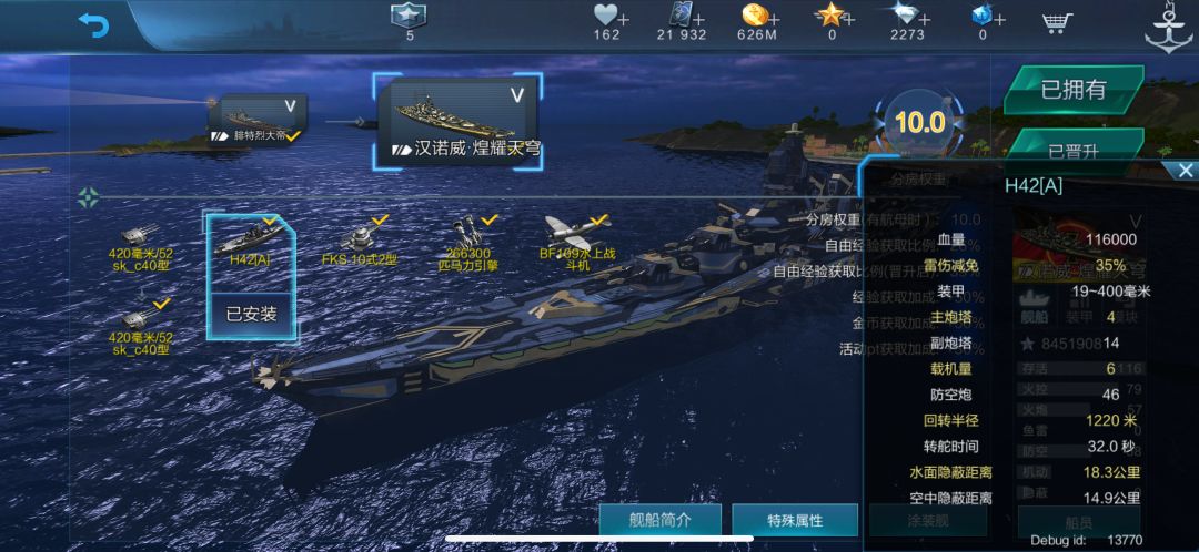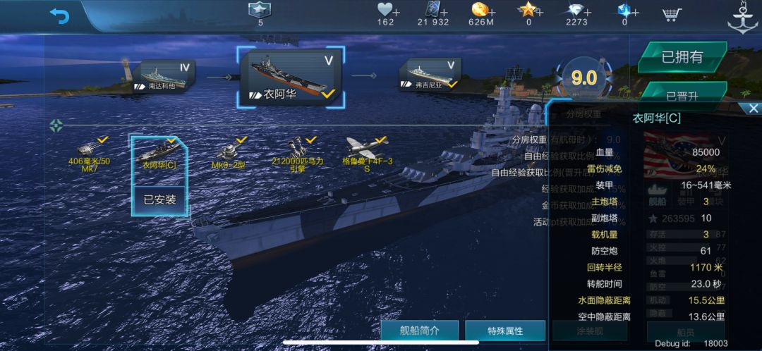 你游带隐蔽属性的涂装舰的隐蔽圈是直接写在面板上而不是计算的,就是格子的隐蔽为16.0,格子涂装舰的隐蔽应该是16*0.96=15.36取一位小数15.3而不是同样的16.0。这边拿42做个对比,可以看到42白皮是19.1隐蔽,42涂装舰隐蔽就是19.1*0.96=18.336取18.3,和面板一致。再拿衣阿华做个对比,16.2*0.96=15.552取15.5,和面板一致。