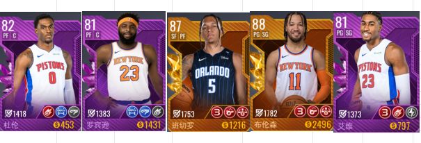 首先分享这套阵容,是我最早很常用的阵容,因为球员选择非常灵活,每个球员都有比较多的同技能球员可供替换选择,基本可以开局就达成技能满配和球员提升,暴力美学,三分机器,罚球引力,禁区王者能提供不错的输出。