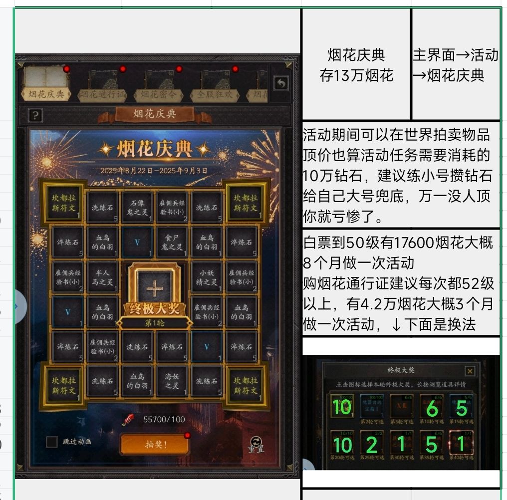 抽奖一般都能提前1-2个完成,所以烟花活动12.7万左右就能完成,建议存13万比较保险。