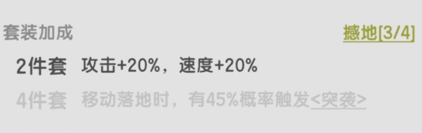 位移结束后,概率触发一次白板四方斩伤害。四方斩我就不吐槽了,反正表现不是很好,斗士的多动症和它的适配性也不够明显,一般不考虑凑四件套。