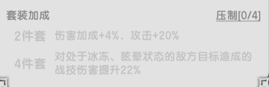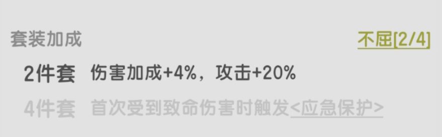 相比另一个套装,这套效果更偏向于让脆皮角色降低暴毙风险,功能性极佳,但还是远不如正版不屈,不要妄想替代。