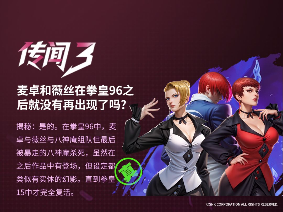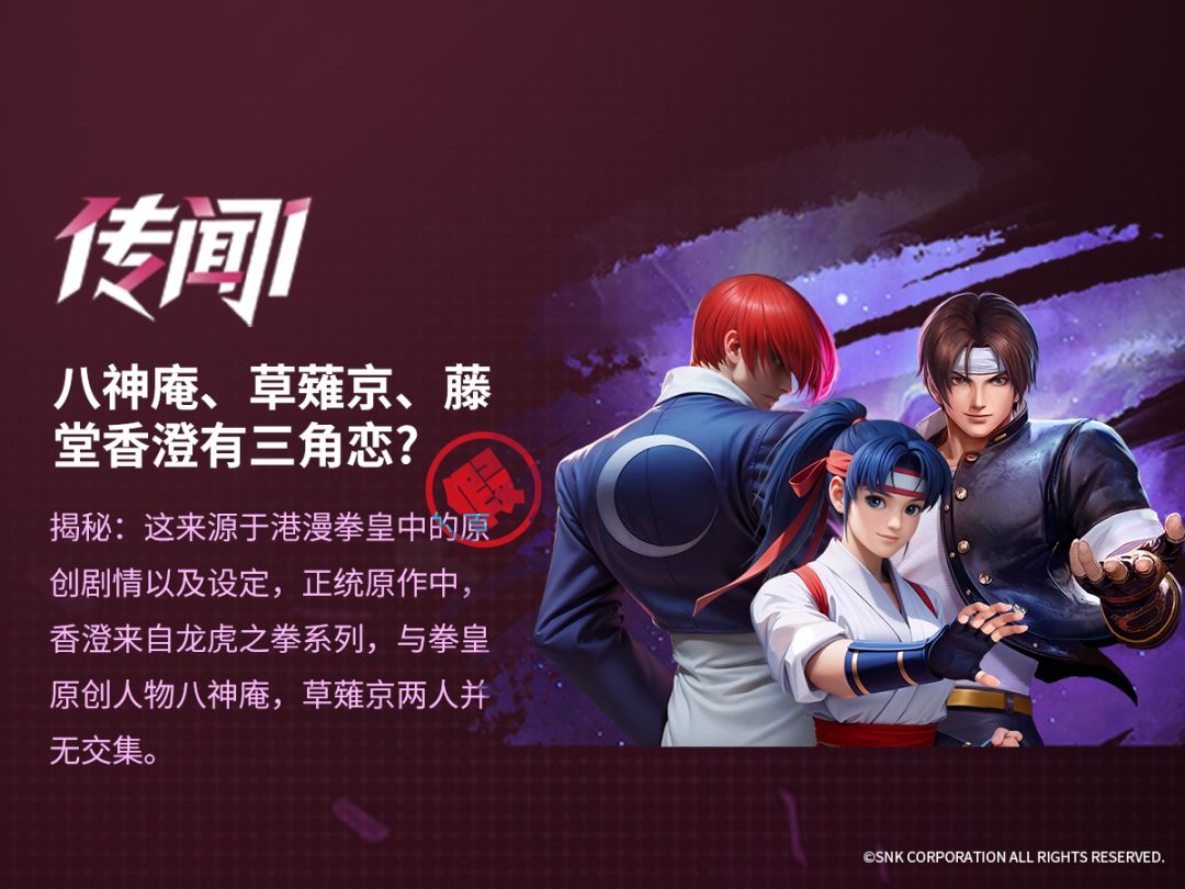 在拳皇的世界里,你曾被哪些 “离谱传言” 骗过?港漫衍生的三角恋、神乐千鹤幻影的 “身世之谜”、麦卓薇丝的 “消失传说”…… 现在,跟着《全明星觉醒》一起,用真相击碎谣言,再聊聊你和拳皇的独家情怀!