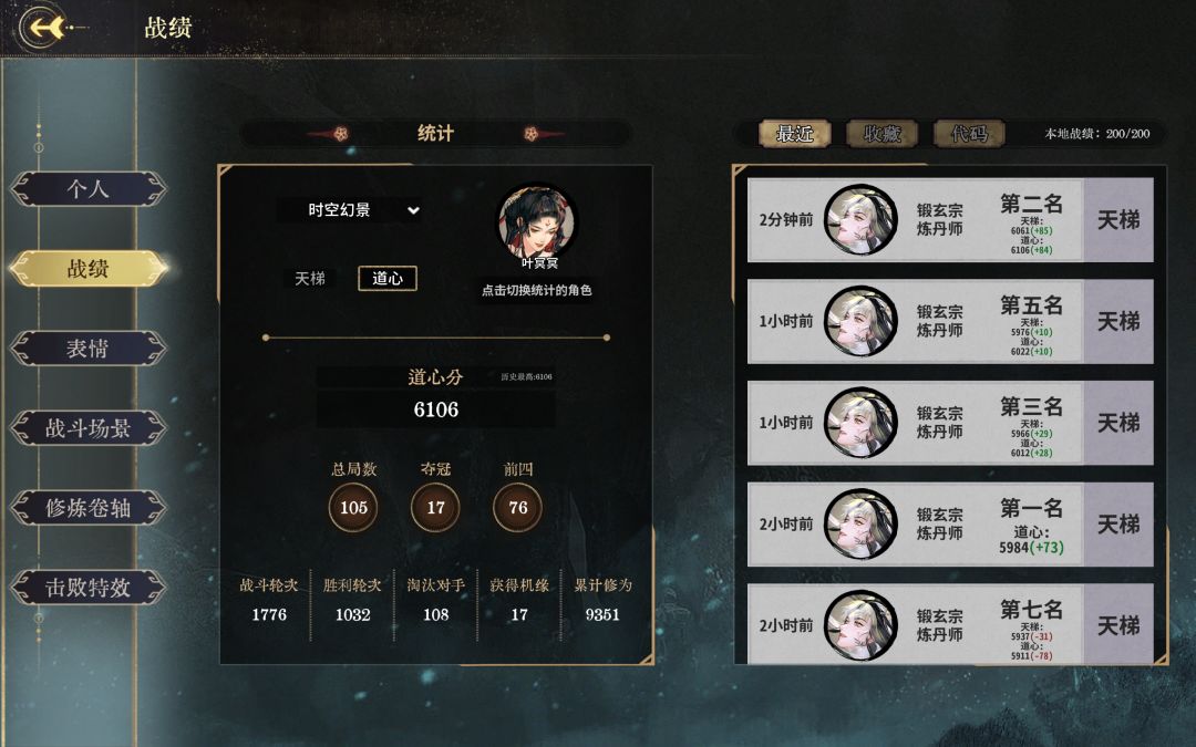 全程使用戳百杀,实战下来,有着72%的吃分率和16%的吃鸡率,整体效率还是比较高的,再加上前面许多局都是因为不熟悉卡组,以及经常忽略传奇神卡“玄心斩魄”,导致错失好局。