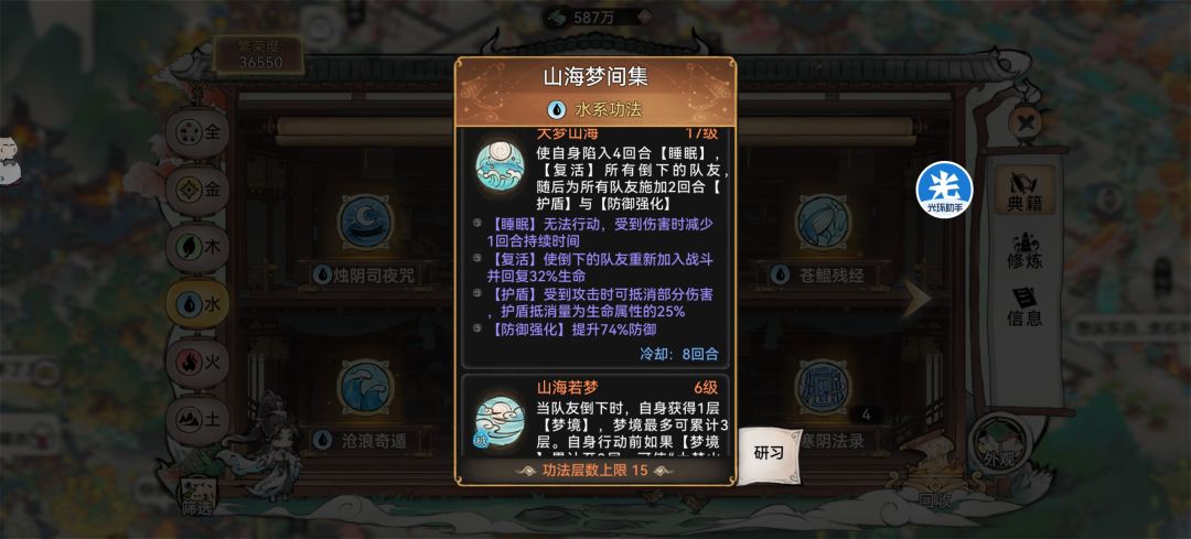 2. 功法:山海+魂归(研习20+);