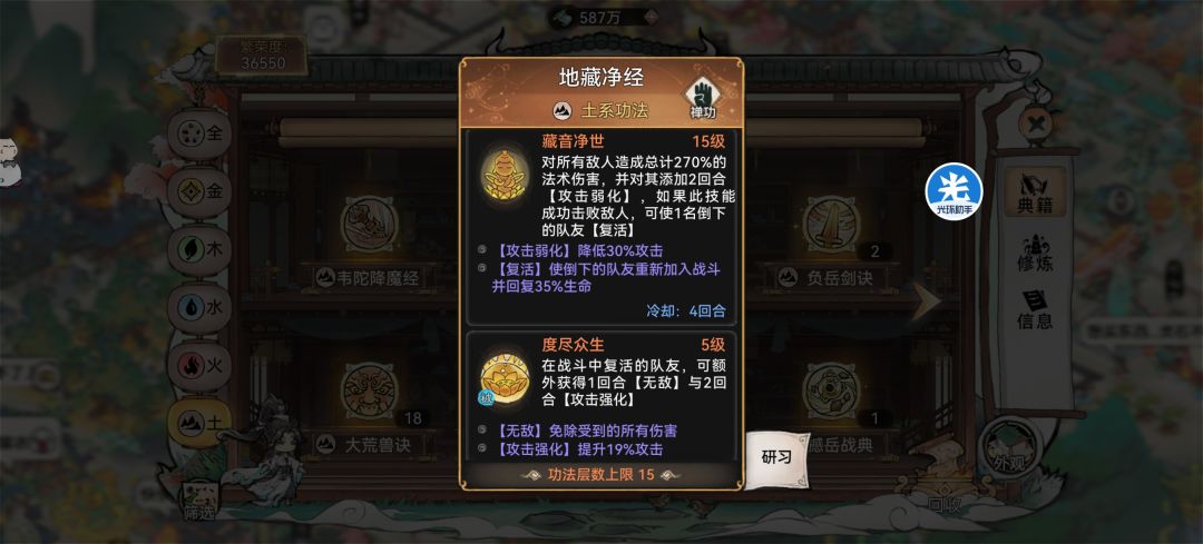 2. 功法:山海+地藏(研习20+);