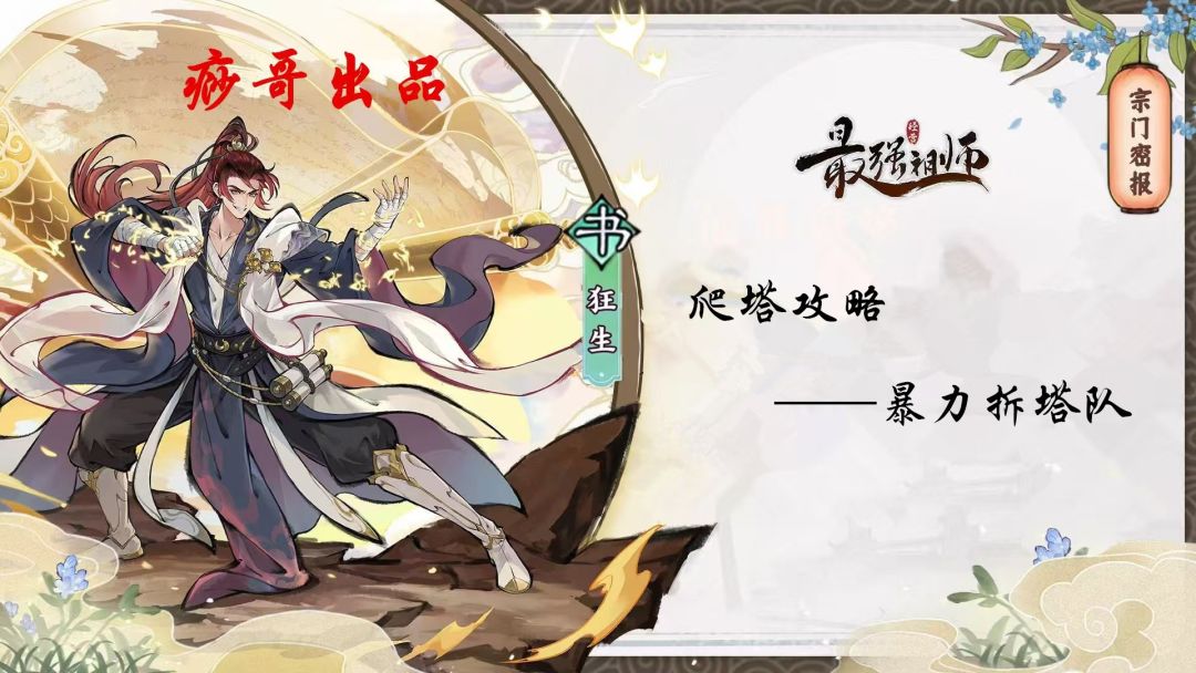 #最强祖师攻略 #最强祖师创作激励 宝子们,关注痧哥不后悔,以真爱发电,写实用攻略,深入探讨游戏玩法。上线不久,狂生便以一匹黑马的姿态,骑着璃天帝,脚踩至尊宝,拳打李铁匠,一套小连招宛如当初的韩天尊般纵横在整个修仙界,到处都有他的身影和大笑声。上一期,痧哥写了狂生的快攻PVP玩法解析;今天,痧哥又给大家带来一期狂生的爬塔攻略!废话不多说,直接上干货!