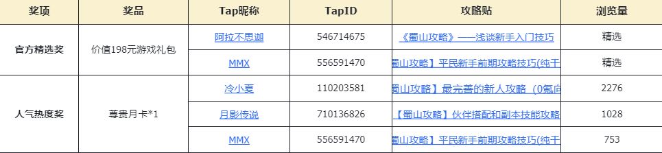 人气热度奖(3名):攻略帖浏览量前三名可获得游戏内「尊贵月卡」礼包