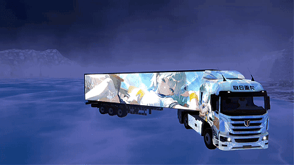 色彩上,全车覆以亮面湛蓝色 ,在冰雪背景下折射金属光泽;侧面 “联合 C9” 标识旁,一道凌厉的白色飞翼线条 斜切车身,为沉稳色调注入灵动韵律。在整体外观设计上,蜂窝状立体格栅呈矩阵式排列 ,中间红底 V 型品牌LOGO 醒目突出;两侧大灯组嵌入硬朗棱角轮廓 ,透镜式灯腔 + 熏黑边框 ,科技感与力量感双线拉满。驾驶室设计上,采用高顶平地板构型 ,拓展内部空间;车窗边框、后视镜外壳选用黑色哑光材质 ,与蓝色车身形成撞色反差 ;车顶导流罩弧度流畅 ,暗藏空气动力学优化的 “隐形实力”。车轮采用大尺寸金属多辐轮毂 ,边缘打磨出镜面切削效果 ,转动时折射雪光;宽厚轮胎带有 深槽越野纹,既彰显重载底气,又暗示对复杂路况的 “征服欲”。