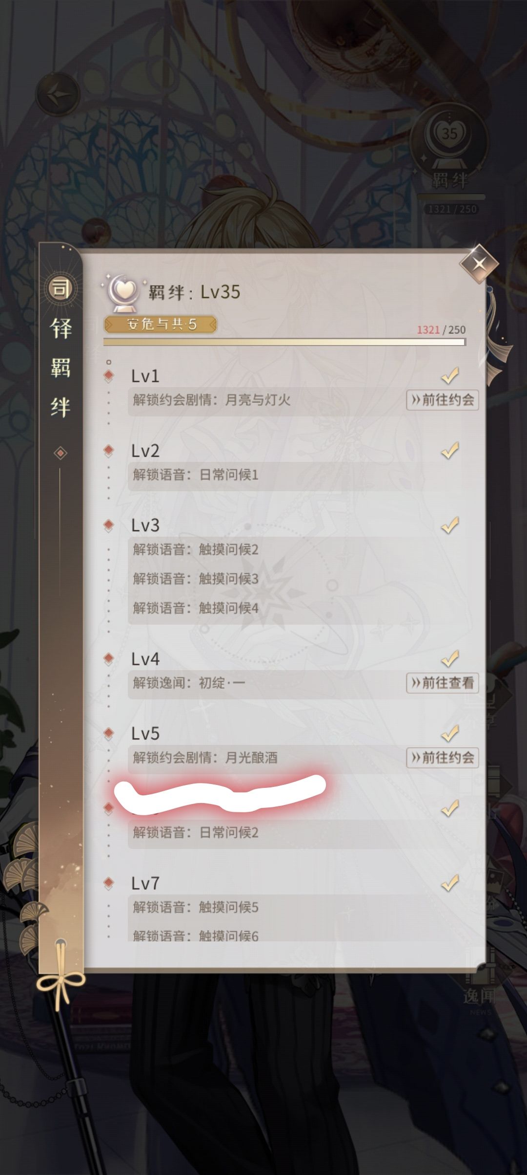 3第几级好感会解锁的剧情,在男主主页点上方的羁绊也可以查看
