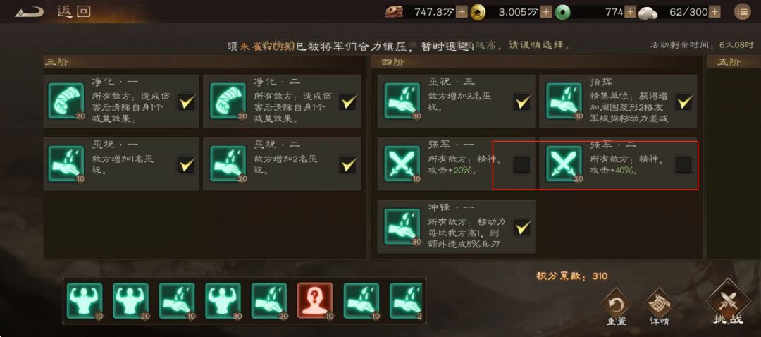 2、下图2个BUFF,强军二得去掉,强军一看个人练度决定是否加上去。