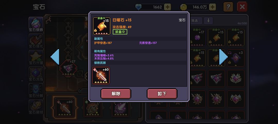 红色品质的宝石在你自己没搞懂时,不要动或者只养一颗。超前期基本用不到红宝石,先以蓝紫橙宝石过渡使用