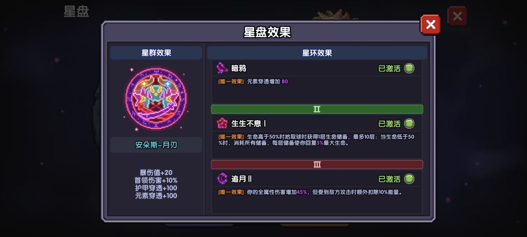 摆好后大致是这样,如果因为追月2的debuff卡关了就把血月拆下来