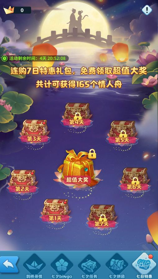 连购七天,福利不断,爱意不散。活动期间,特惠礼包开放购买,连购七天即可免费领取超值大奖。