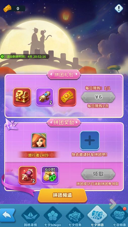 活动期间,购买拼团礼包参与团购活动,拼团成功可领取超值奖励。与心意相通的伙伴携手拼团吧!
