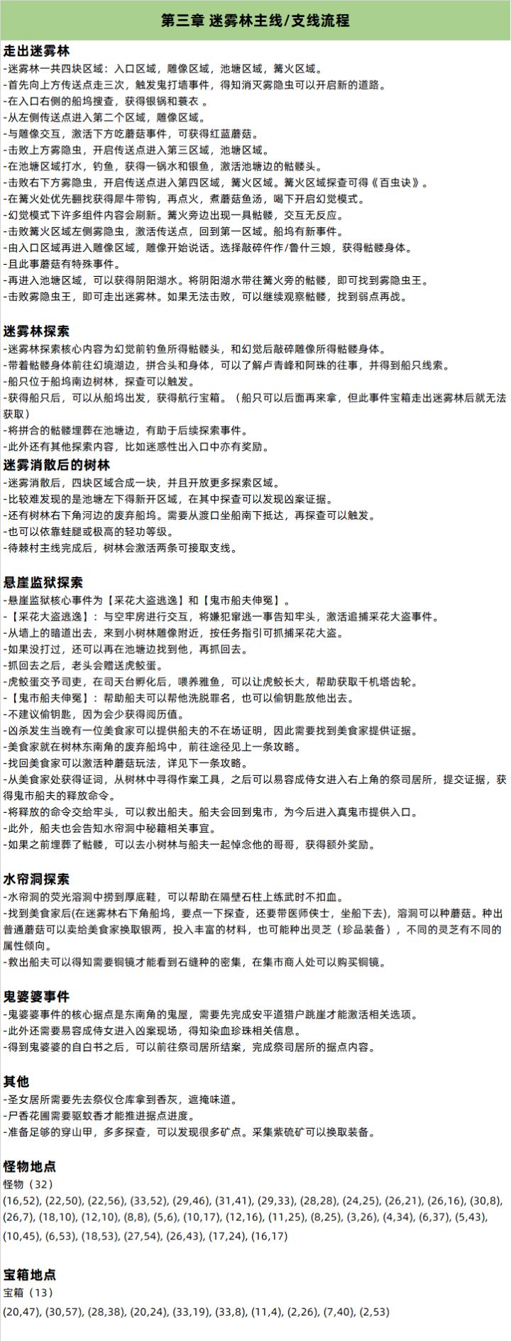 第三章 迷雾林主线/支线流程
