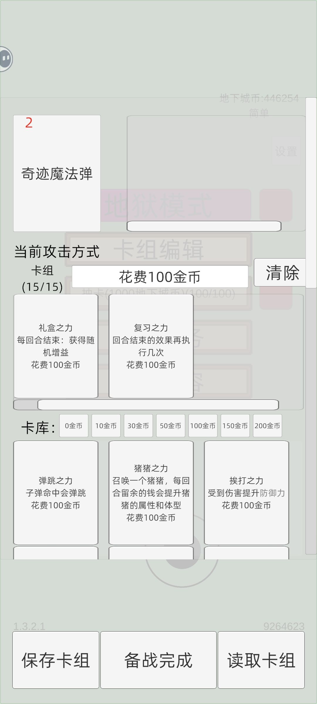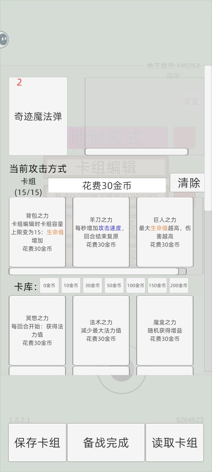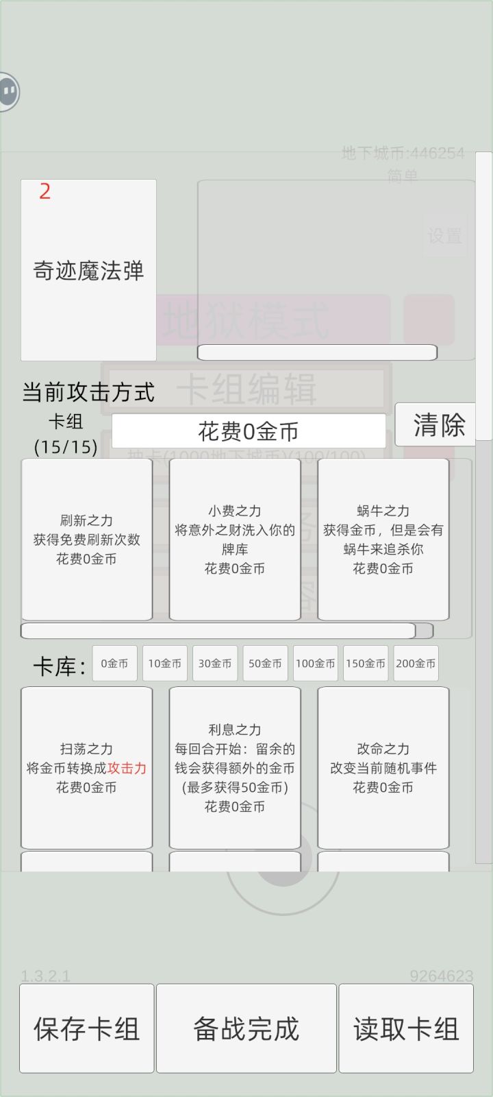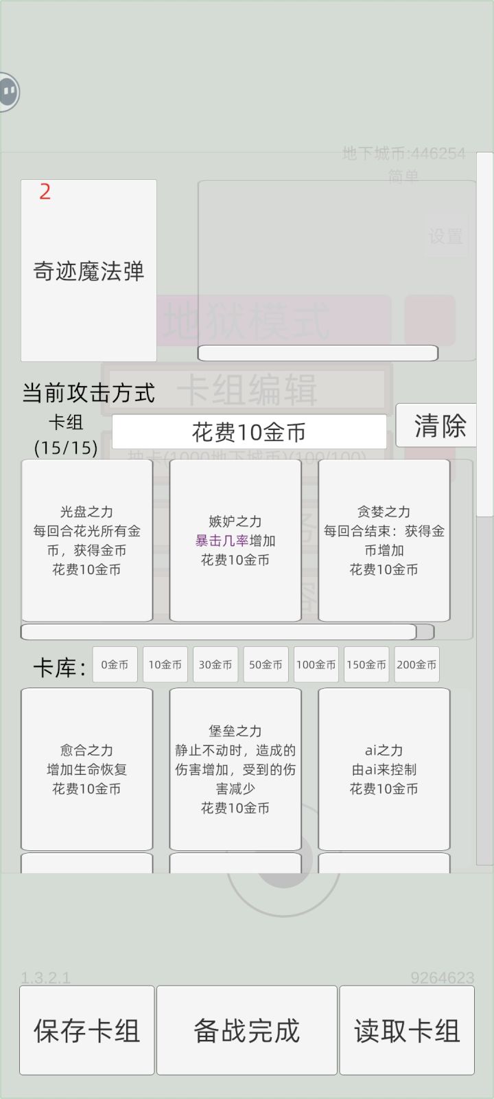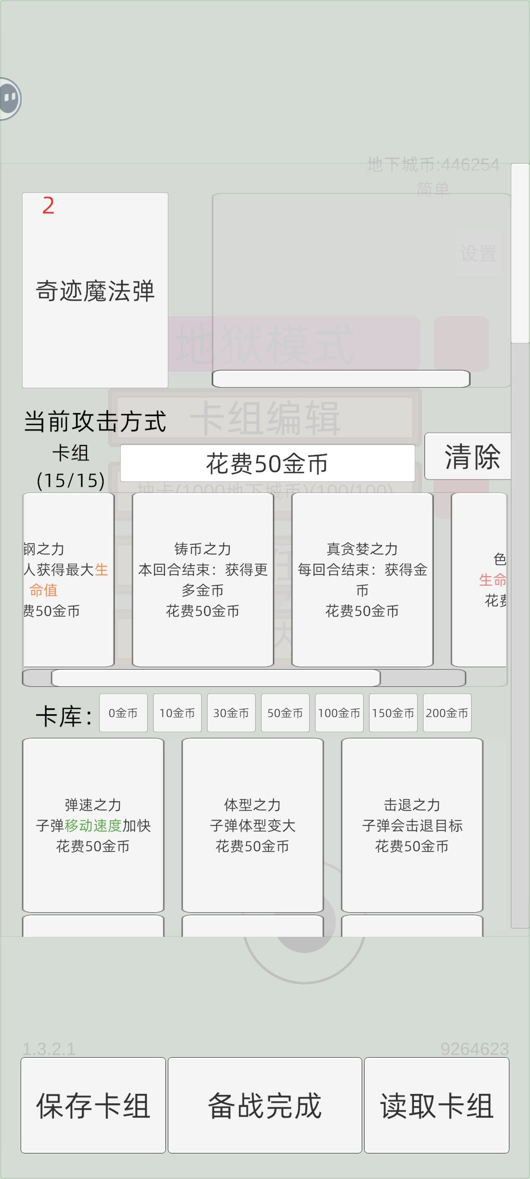 50费:钢,铸币,真贪婪,色欲(色欲可更换其他卡牌,打神时也可以换成神)