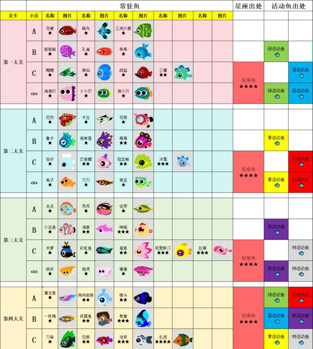 每个月也会出对应的星座鱼,关卡出处可看上表右边部分。