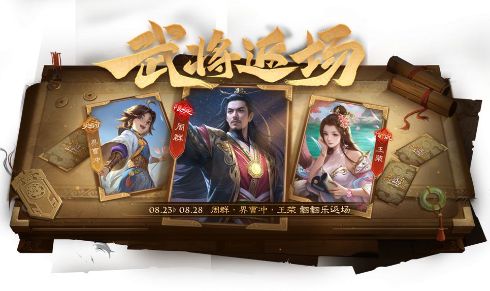 *本期返场春福龙珠活动(谋张绣)、立冬龙珠活动(谋华雄)、夏至龙珠活动(李婉)、夏日龙珠活动(张世平),龙珠可购买时间:2025-8-23 00:15:00~2025-9-6 24:00:00;