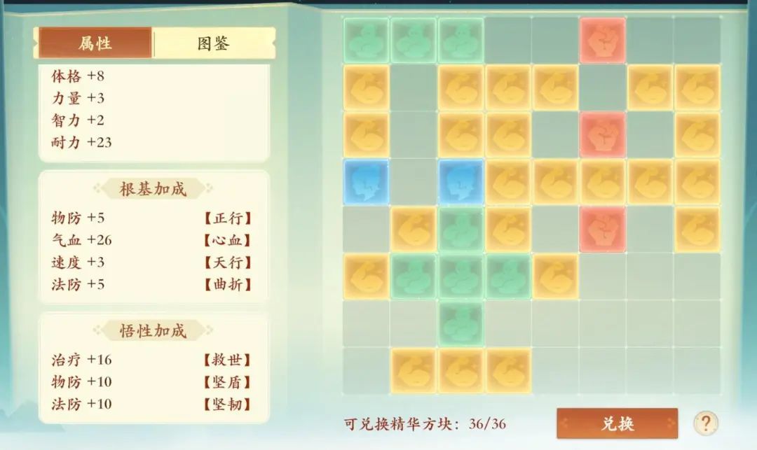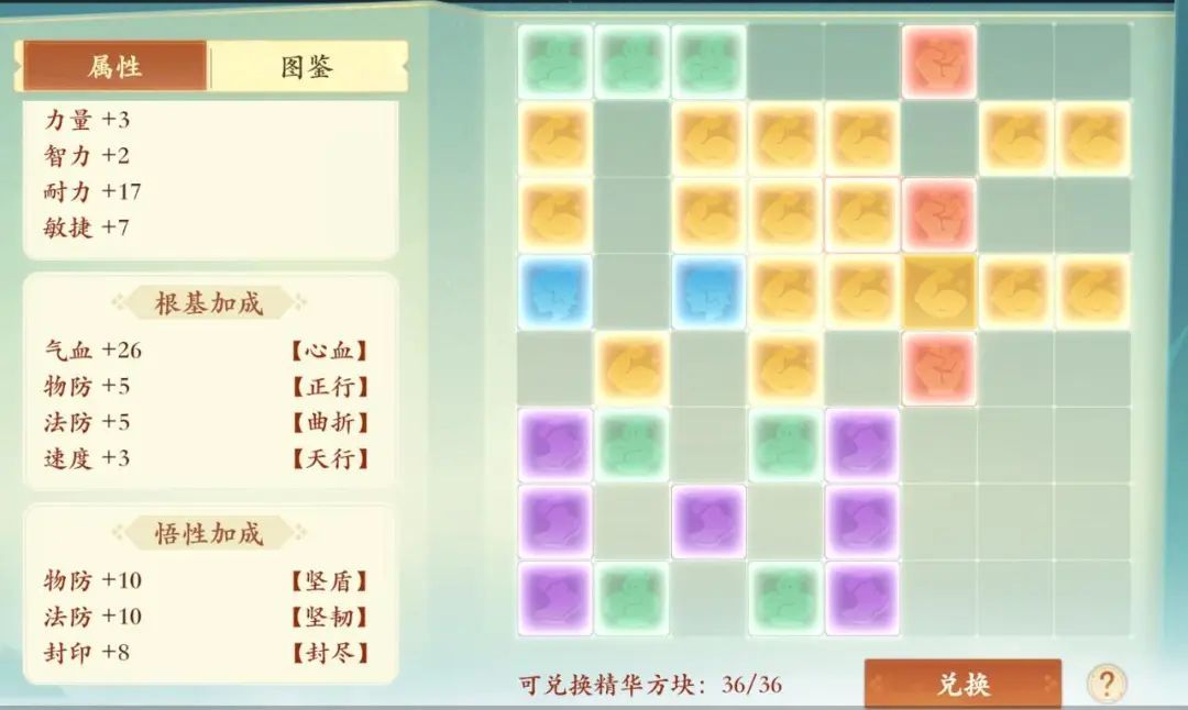 整体来看,乾坤盘中的悟性加成对治疗、二速封等追求综合属性的职业用处比较大,但是对物理/法师/一速封等追求单一属性的职业来说,是不如直接摆放对应属性加点的方块的,如直接加36点力量,整体收益还是比较可观的。