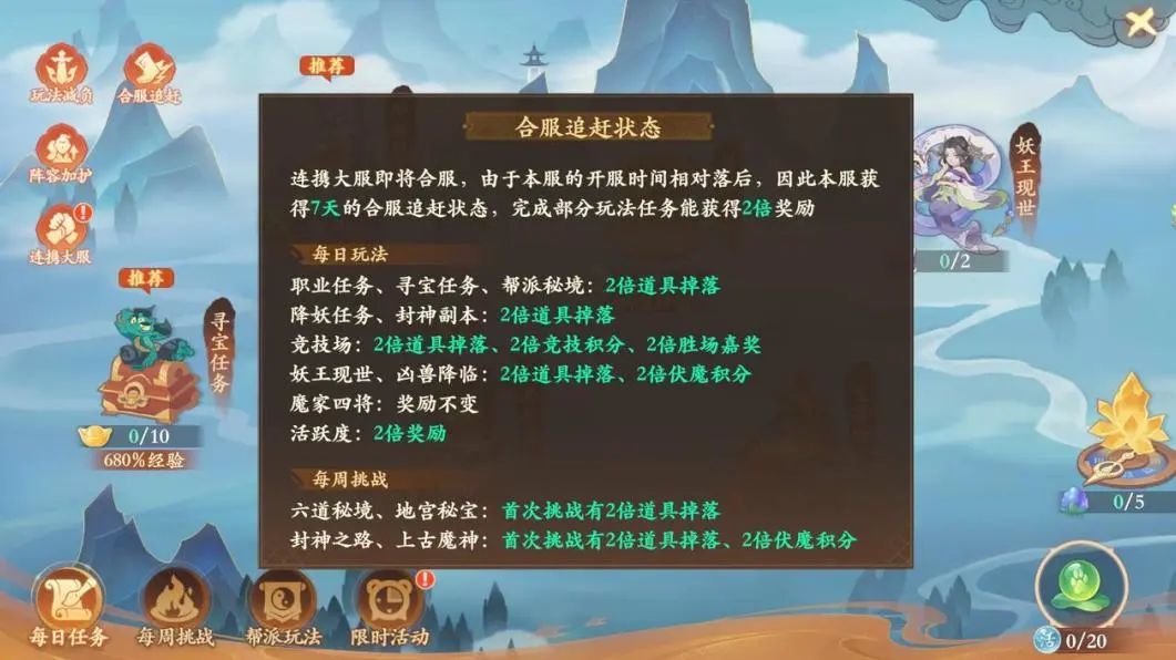 还专享合服进度追赶机制,合服后连续7天享受双倍日常、周常奖励!