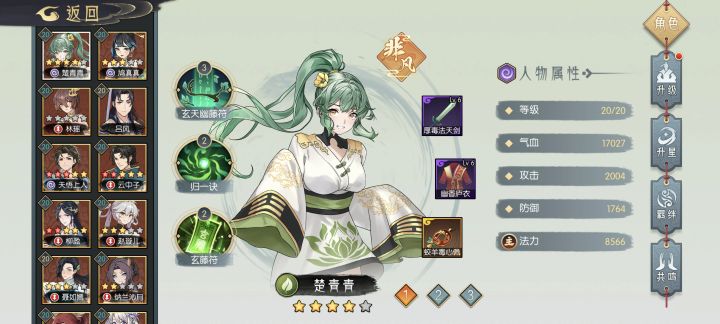 真真、青青打出所有卡牌,其中归一符,追风咒最后释放(哪个百分高就最后放)。