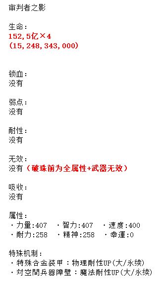 - 审判者之影消耗生命值时,为敌方前卫及后卫全体累积