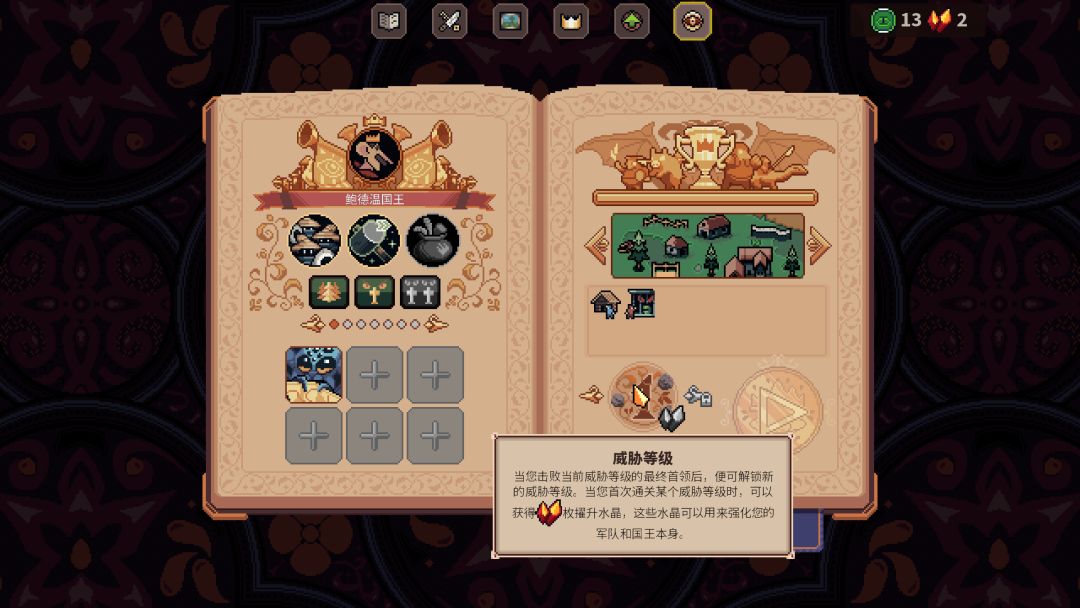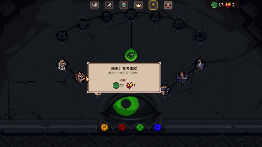 游戏局外成长元素也蛮丰富的,不仅可以解锁其他国王(每个国王有对应不同的技能,并且视野范围也会有所不同),