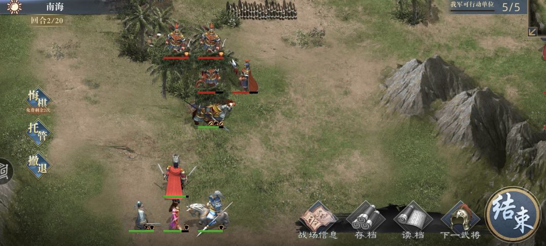 接着把城内步兵和上面两个弓箭手引出来,解决后正面城内只剩孙策周瑜以及剩余两个弓箭手。等待回归CD,加好移动力,控制距离别被孙策打到,周瑜原地不动可以无视。