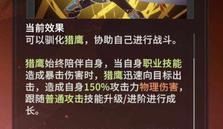 现在的二连矢大概总占比15%,鹰击30%,鹰击是吃技能暴击才会攻击,注意是技能暴击,,肯定比不过隔壁狼弓的恐怖拉弓人,甚至削弱后的狼也比不了。这也正常,狼弓和鹰弓的占比不一样,狼弓吃狼,鹰弓吃技能触发连带技能。狼弓后期急速精通高了可以堆幸运,鹰弓暴击急速高了堆精通,这也是精通加成变高的原因吧!