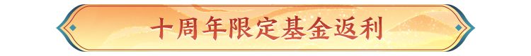 8月22日00:00-8月24日23:59,十周年限定基金返利限时升级!7倍元宝返利超值性价比!