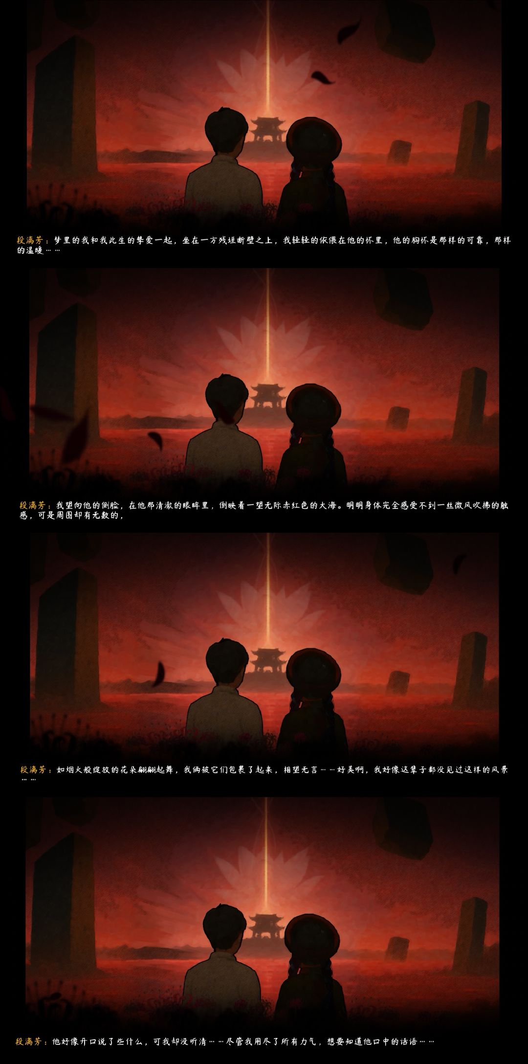 终于达成所有成就了,真不容易啊,这个段宅有点折磨人了。这一部的故事和第一部的《街》是同步发生的,以段漓芳的视角展开,讲述的是段漓芳在接到李明来死讯前后的经历。
