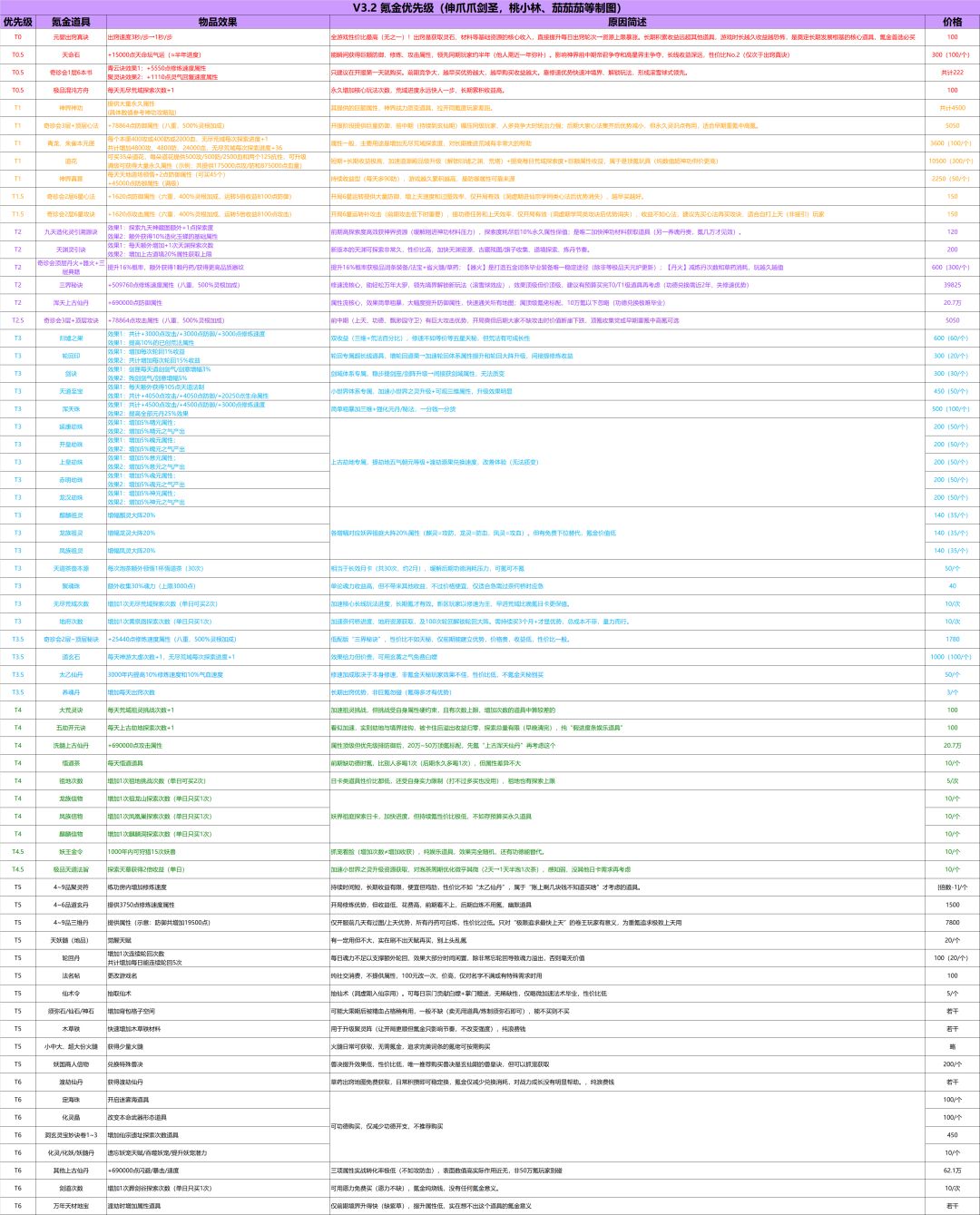 特别鸣谢“茄茄茄”大佬的大力协助,本次全新氪金攻略表正式完成,为各位道友提供最实用的参考!